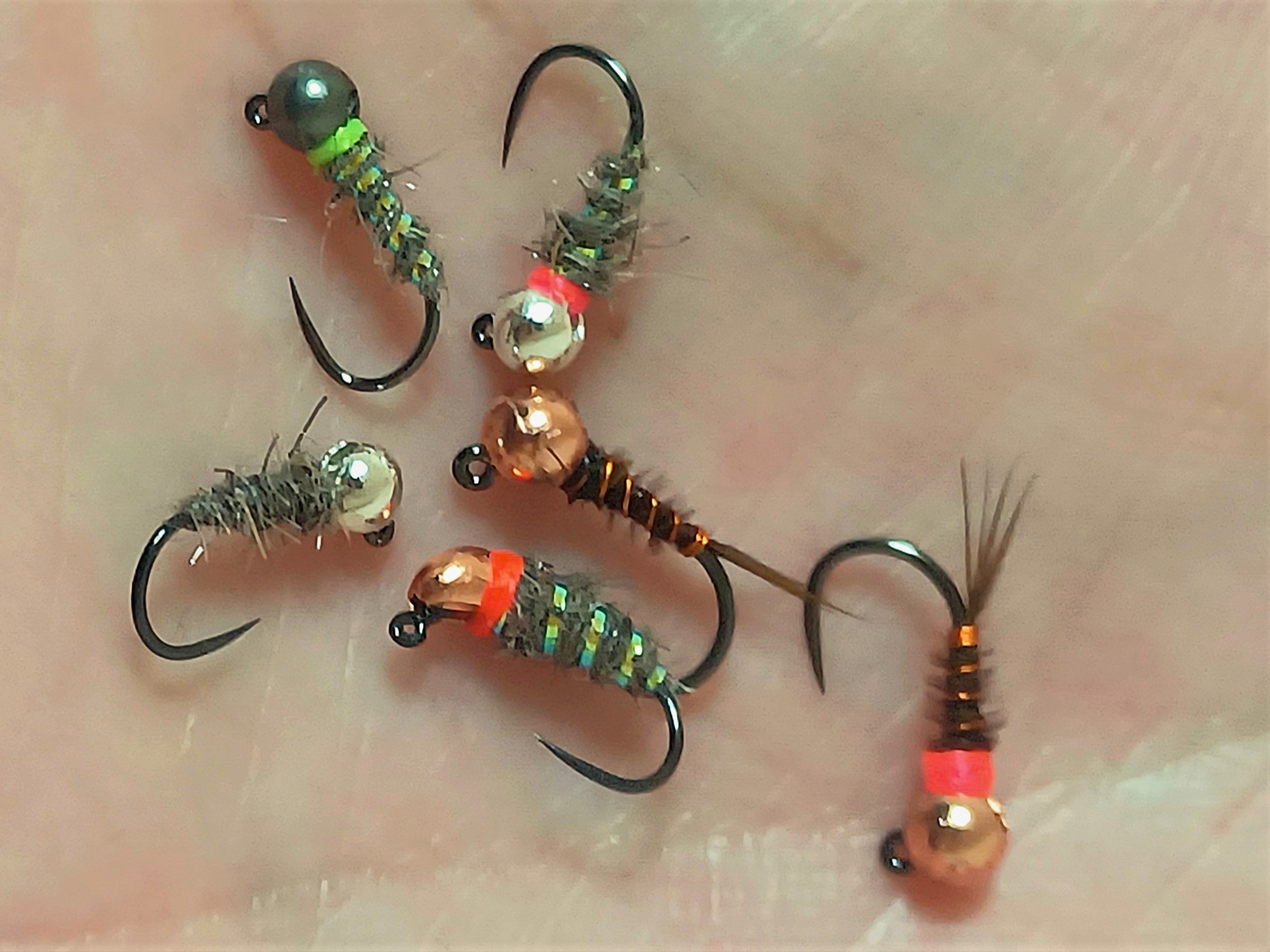 Lastly, they're versatile, they're suggestive rather than specifically imitative so are fairly universally applicable. Switching the bead size and colour or thread colour allows you to tailor the fly to specific conditions you're likely to encounter or target species- I really like a sexy walt's with a silver bead and fluo. pink collar for winter grayling on sunny days, for example.