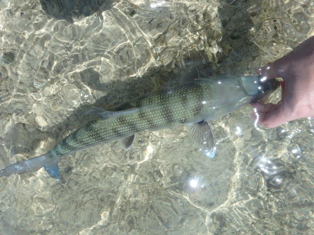 I’d love to catch a garfish on one of James’ specially tied flies – these are designed to tangle in their teeth rather than rely on getting a hook-hold in their bony mouths. Last time I didn’t get much of a chance with the few he tied as I was bitten off too quickly by a cuda that snuck in and swiped the fly before the garfish!