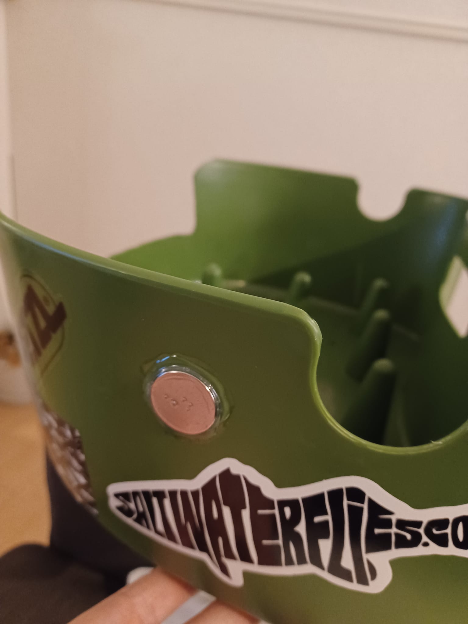 I'm currently using the Line Kurve basket for the flats, it semi rigid and reasonably comfortableto wear. But like all others I've tried it's not suitable as is. The first thing is drainage holes, I'm always baffled by companies making baskets without them. Easy to add a few 3mm holes, I don't want it draning too quickly and moving the line around casueing tangles. The second mod, was an idea poached from Hawaiian Dave; cutting the front down by about half the height, this really lets the line shoot free far better. I'm conviced that letting the line escape the tub less vertically reduces tangles too. the last thing I did was add a magnet on the left side of the basket, an idea I got form an Okinawa guide, by using it to hold the fly and taking a loop of leader in your hand instead you can have an extra 4-6ft of flyline outside the tip while wading, something I find helps me with quick shots(if I've a opper on I'll use Paul's snakehead shot because it's the fastest). I've seen people adding a bungee to the rod holing part, but I don't use that so much, so haven't added that yet, I might though..