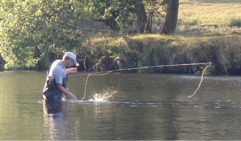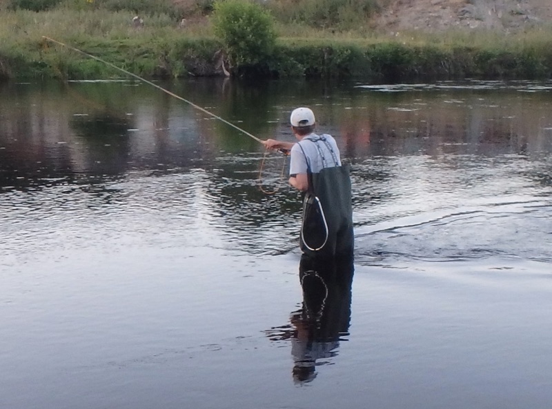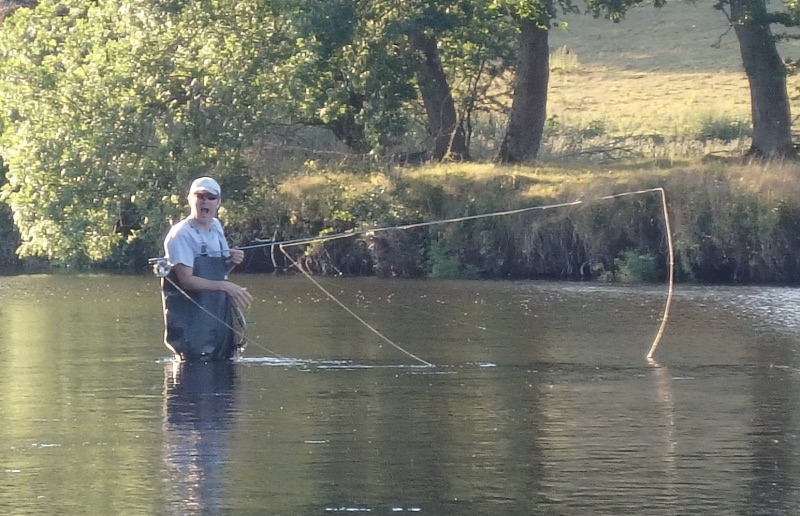 Tracy and I had a very pleasant evening’s fishing on the Dee in Corwen at the weekend, due to the very hot daytime temperatures we didn’t leave our home until 6pm but our new proximity to the river meant we were tackling up by 6:30. We headed for a spot where I’d seen rises on my previous visit and, sure enough, there was numerous tell-tale dimplings to indicate that there were still fish in the same location.