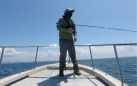 Monday saw 3 of us heading out into Tokyo bay and round into the Sagami gulf. Seichii and I have been making a regular thing of these trips for years now and were joined by Chuck who's really quite new to offshore and tackle 10 weight and above, in fact this was only his second time out! It was good to see that he'd been practising and was able to cast well enough to get into the fish. It didn't take long before the first shout of 'tori yama' (literally 'bird mountain')came from the captain-he'd spotted a sizeable flock of birds taking advantage of a work up. It turned out to be small yellowtail kingfish rather than Mahi. Unfortunately there was a good wind blowing in the same direction as the current so the boat was just drifting too fast to get a decent speed on the retrieve, so there were a lot of fish following and turning away from the fly, the only takes coming when there was enough of a lull to allow us to actually move the fly! There's no point in killing yourself so we switched to spinning rods and stick baits, picked up a few fish to get the blank off and moved on.