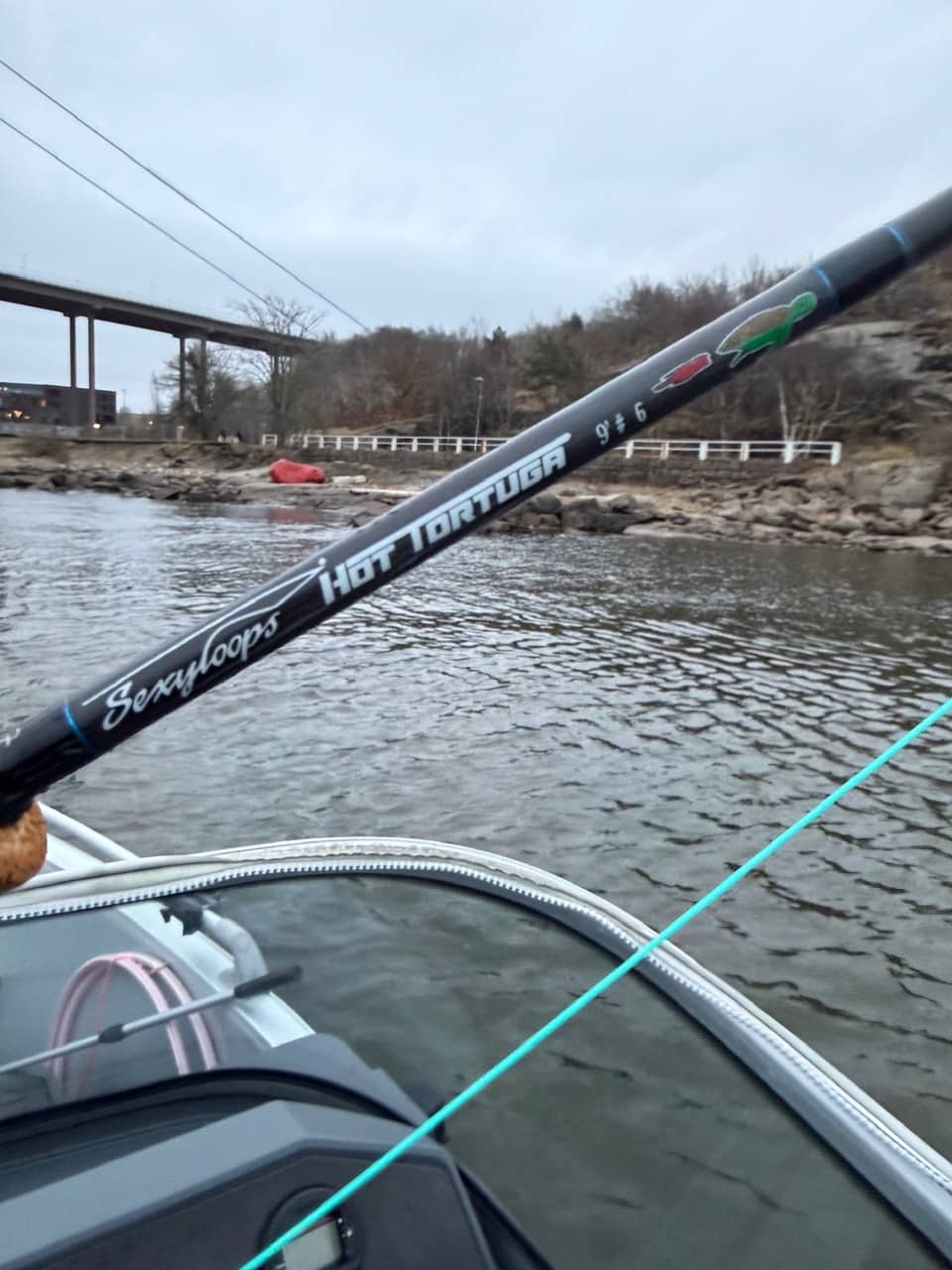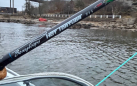 In the new area I lost the fly when it got stuck in something. Putting a new fly on quickly and started to cast again. Soon I got a tug in the line when I had landed the fly very close to the shore, it felt like a fish but I thought it was a rock. Checking the fly, the hook was sharp and no debris. So I turned the boat around to drift past that area again. As soon as I landed the fly in the same square meter as the previous drift I hooked a small sea trout. I managed to get an other cast into that square meter before I had drifted too far. Got a take again as soon as I started to move the fly but didn’t hook it. Probably another seatrout in the same size. They have a tendency to clump up like that when the water is cold. I made a few more casts in the drift but no more contacts. Then it starting to get dark so I called quits.