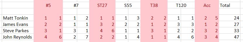Looking back at the championship scoring, it highlights disciplines that individuals are particularly strong or weak in (Matt has no weaknesses, he’s as good with a #5 weight as he is with the T120). For myself I have two outfits that I need to improve with over the winter; the ST27 and the T120. I managed to lose 7 points to Matt in just these and when his overall winning margin was just 3 points, it’s obvious that I need to improve with them.
