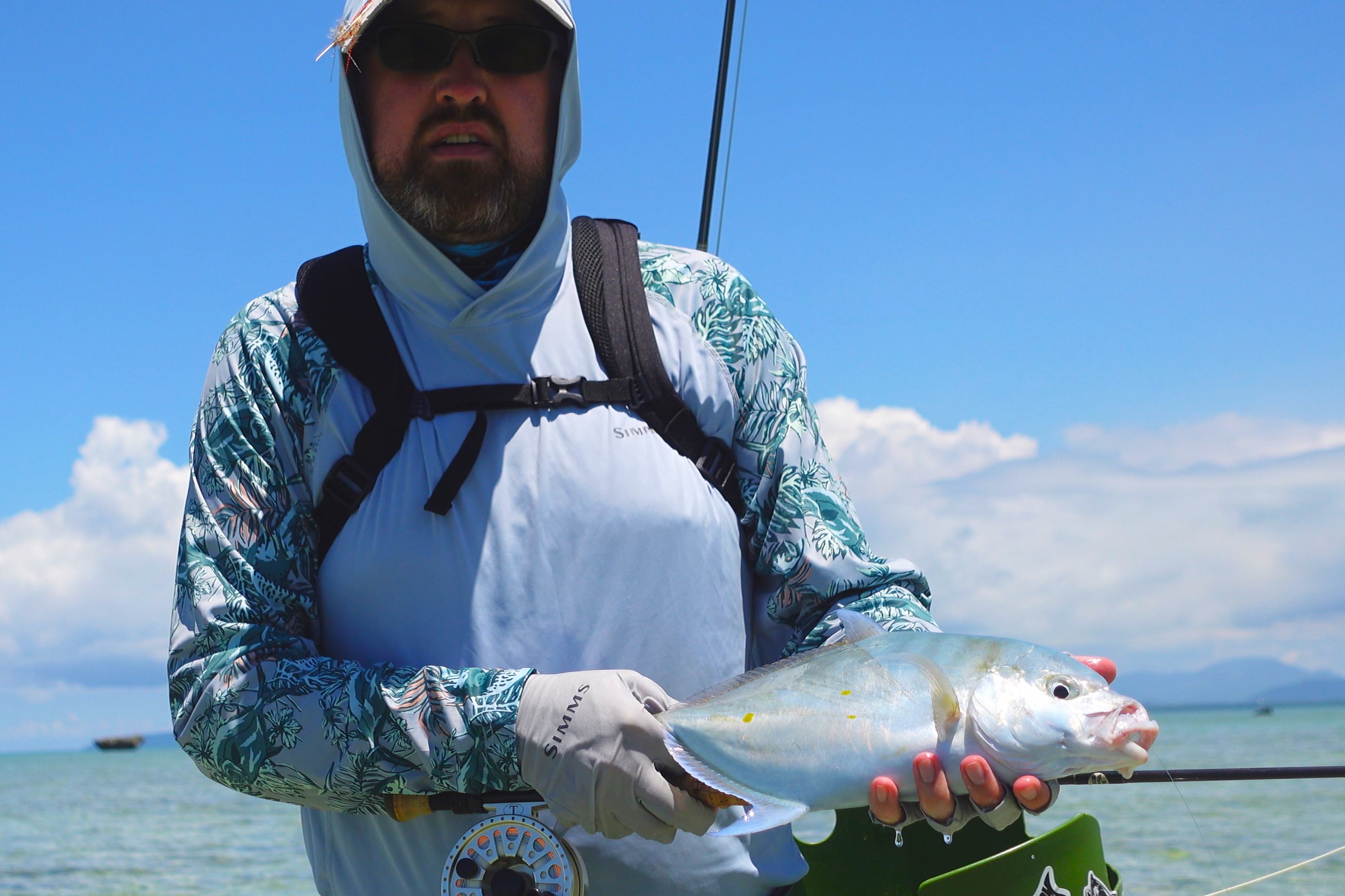 Today with the later tide we had a look on the southern shore to see if we could find some triggers. They've been conspicuously absent so far! We didn't find anything there and when that flat got too deep we headed north again. The big flat was a bit quiet, but as we got into the last hour of the flood the fish started showing up. Miki caught some kind of little snapper then I followed with a pocket sized brassy that beat the bigger fish to the fly. 10 minutes later we doubled up after Miki made a perfect shot to a nice yellowspot and I threw my squimp at a brassy that was following it. That was his last fish but I took another half dozen before we called it a day because he had to leave to get the ferry back to the main island for his flight back to Tokyo. I've got a week left and the forecast looks great, with clear skies and reasonable winds. Unfortunately I'm down to my last squimp because the box I sent with my big flybox, poppers and spinning reel still hasn't arrived.. I hope it does because the small fly box I have is crab heavy for triggers and I'm not seeing any of them, a couple of days like today and I doubt I'll have any shrimpy pullers left!