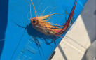 Another thing to sort out is the formation of a belly in the line during a retrieve in a drifting or otherwise moving boat. Without naming names, I’ve gotten conflicting advice. Most tell me to point straight at the fly. But some suggest keeping the rod pointing tangent to the curve. On reflection I’ll go with the majority opinion here. In any case I think most problems can be avoided by minimizing waves in the cast, turning the fly over properly, starting the retrieve promptly and NEVER missing the grab. The worst result when I let the belly get too pronounced is that I swing the rod and trout-set to make up for it. I’ve lost some nice fish that way.