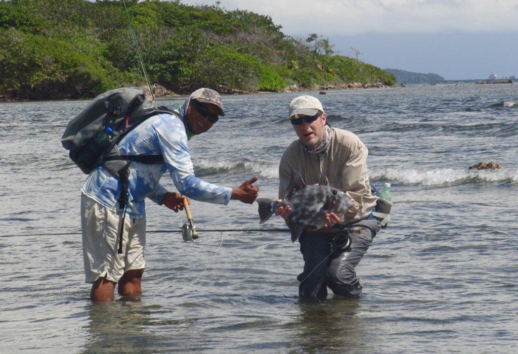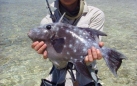 There are a number of triggerfish species that we’ve targeted, around the Caribbean they are mostly the oceanic variety, but these come with a number of colourations from almost black to pale blue, with spotted fish in between. There are other Caribbean species, queens etc., although it is rare to find these up on the flats. In the Pacific there are more shallow water species to target such as yellow margin, titan, moustache, cross-hatch and the beautifully coloured Picasso triggers. All of these fish seem to have similar traits when it comes to taking a fly though.