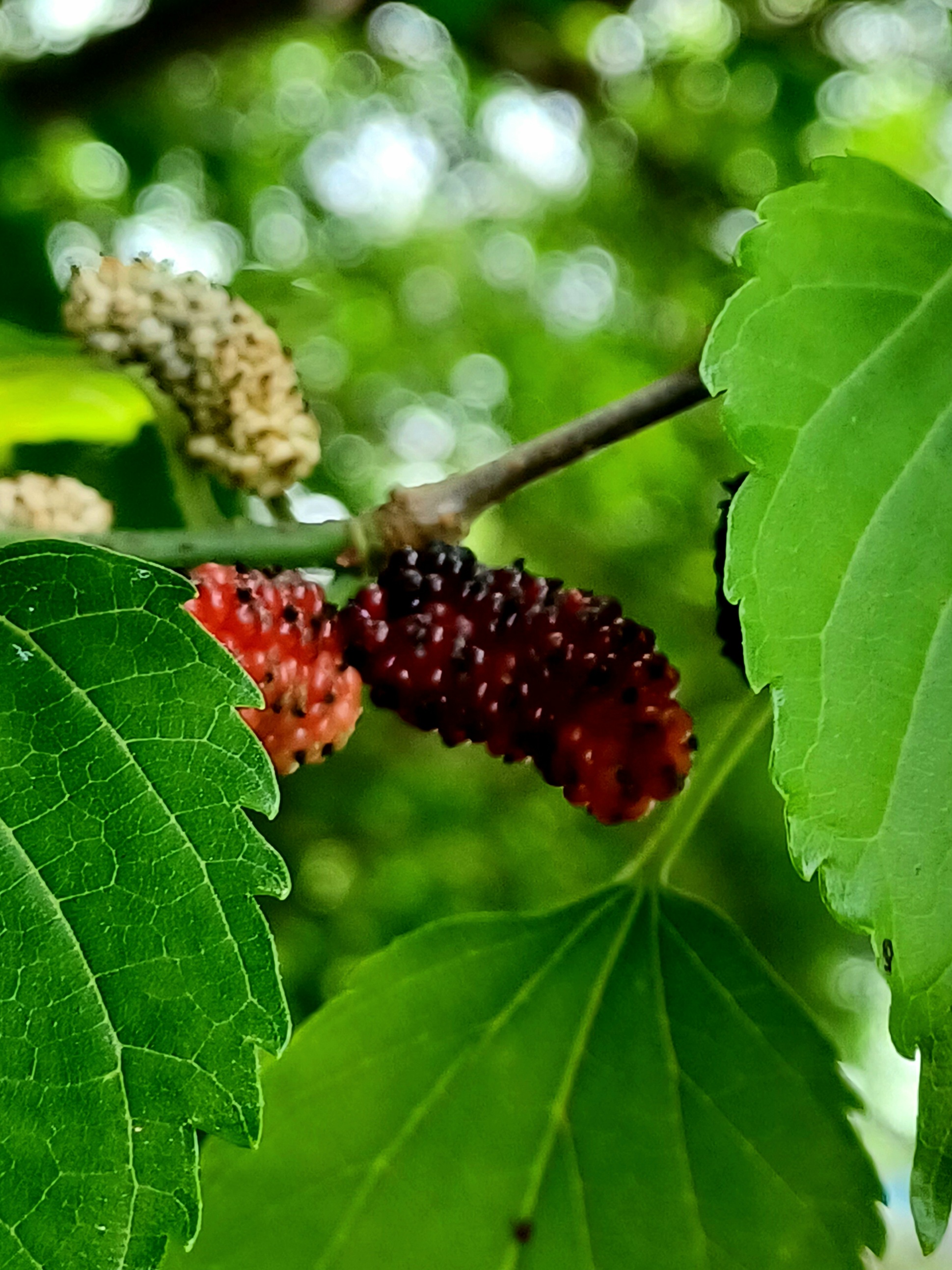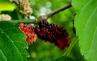 The following day I was workign from home and had no meetings or anything time dependant so went a walk up the river in the morning. I was expecting a dirty river but it wasn't so bad having dropped and cleared fairly reasonably overnight.  What I didn't expect was to see the mulberries starting to ripen and fall in the river. I usually associate that with mid June around here. Of course my neglect of the carp box meant I only had one beat up mulberry pattern with me. Luckily that didn't matter because the fish were starting to condition themselves to the plop of of the berries and, crucially I haven't fished for them enough to make them wary of eating everything that falls in. I caught one fish quickly on a glo-bug, quite far from any bush, but it was clearly turned on by the plopping of the fly, rushing to the splash but not finding the fly. Another cast a bit close and it ate aggressively, clearly trying to make sure none of the other fish nearby beat it to the "meal". I had a couple of refusals nearer to the bushes so stuck on a black woolly worm and quickly picked up another couple before heading downstream to the next bush. Years ago I took cuttings from the existing mulberries and planted them along the river to increase the number of berries falling in during the summer. They didn't all make it, but several did and the river now has a berry bush every 1-200 yards. It's ideal really, more food for the fish, birds, creatures and me as well as more of the excellent berry hatch in the summer.
