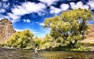I contemplated the arid landscape as we bounced along the dirt road that parallels the lower river. Massive Andean condors soared overhead between the towering rock spires and crags where they roost. The Malleo Valley is a spectacular place, with hints of Gallatin, Madison, Grande Ronde, and Deschutes all in one, and we were the only anglers on the lower river that day. My friends that I was with love the Malleo for the fantastic dry fly fishing and its bright and healthy trout. I found it very pleasant to fish, easy to wade, and crossable in many locations. The lower river is a series of perfect riffles, runs, and pools that were easy to approach and fish with a variety of methods. We fished to some nice trout that morning as they rose to small mayflies until a bit of wind put the hatch off. Eager for more fish I quickly switched to nymphs. A size 14 Copper John was working really well for me, and I hooked 6 or 8 rainbows to 16 inches; typical fish for the Malleo. As is often the case with my fishing friends, everyone in the group dialed into their own program and ended up wandering off in different directions.