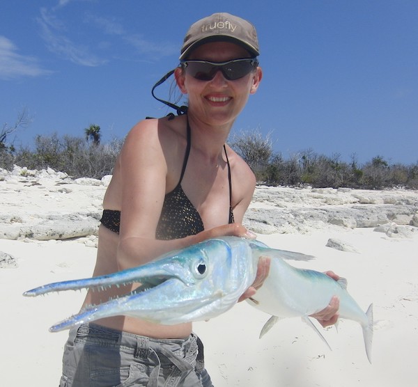 In preparation for our next saltwater trip, we’ve been reviewing what flies we need so that James can tie up some that we’re low on. One of my most memorable fish from our last trip was a huge garfish that I hooked with a fly I was using to target sharks. It was swimming around with several smaller Gar and seemed intent on taking my fly. It took line, jumped quite a few times and was great fun to catch, though a bit fiddly to release with so many teeth! I remember distinctly that it had a beautiful blue colouration on its back.
