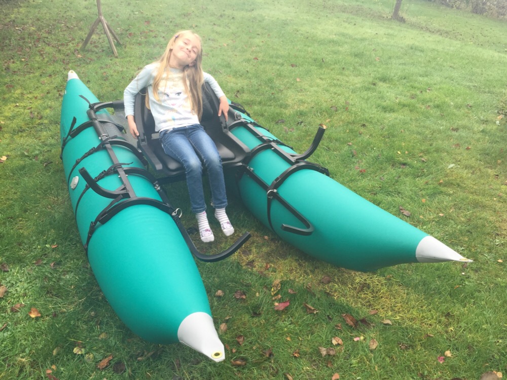 I *really* look forward to using my new pontoon boat, which I've added to the armada. As you can see in the picture, my youngest daughter, Elvira, also seems to like it - at least she had fun on it as I dry tested everything when I got it.