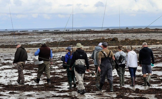 When we caught up with Mark and Bob, sadly it had been a typical British salt water day – very tough. The water was coloured possibly due to strong winds the day before so visibility was difficult. The tide was also very big one so it came in quite quickly and the location choice was restricted due to the strong westerly wind. Most of the anglers hadn’t caught anything but two of them had caught bass; those that went a little further and ended up with the rising tide coming in so quick that they got a dunking with the water coming in over their waders. However, everyone seemed to have a lovely afternoon anyway including one who had his first basson a fly. It was really great to meet everyone especially young Cameron and his parents, and Michelle who had just taken up fly fishing.