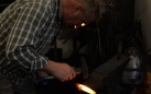 For now, I'll show you a picture during the forging process - taken as the billet of pattern welded iron and steel was being forged into the overall, final shape of the knife.