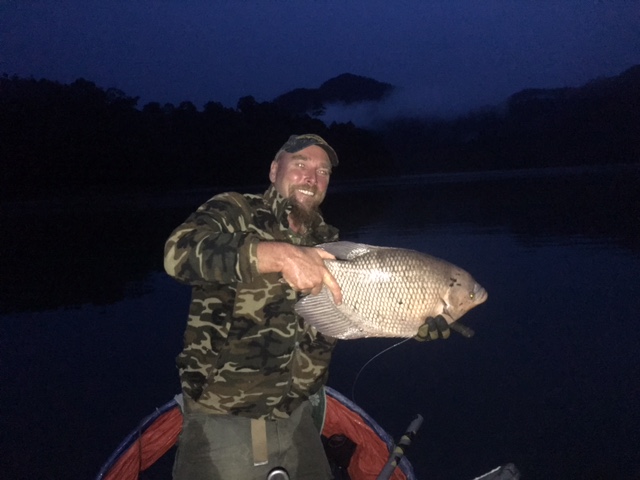 I think what I love most about Giant Gourami is that there are so many methods available/required to catch them - and I'm still only sight fishing the surface for them. Last week Flavio and I encountered a fantastic rise of perhaps some 30 Gourami running a windlane over a 90 minute period. Our approach was to try to bomb them, intercepting their path and chasing them with the electric motor. I missed one and landed one of 3KG.