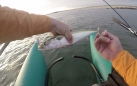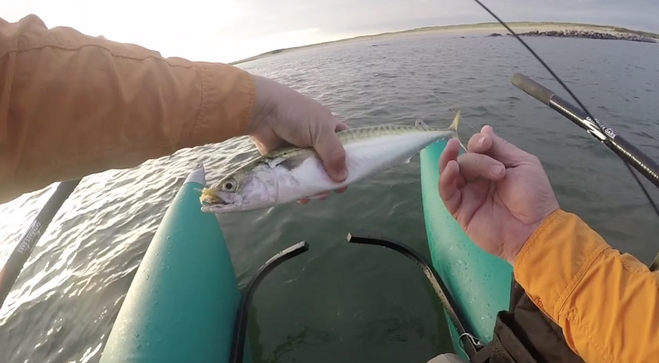 In the pontoon boat I can row out a good hundred meters and fish clear water - and cover more eater, looking for the mackerel. I think thre big schools are gone, and it's mostly smaller shoals or even single fish that remain.
