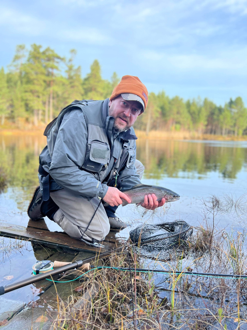 PoD: A lovely, well conditioned rainbow from the Swedish Hökensås fishery. Caught on my own patters, W/B Zonker. I made a video how to tie it maybe 10 years ago, find it here.