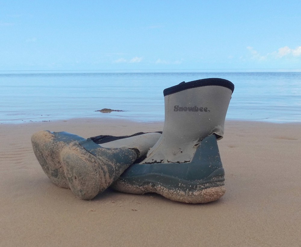 The first time I went on a dedicated saltwater flats fishing holiday, a 3 week DiY trip to Eleuthera, I went equipped with an old pair of running shoes.  I’ve never been a slave to fashion (in fact I think the whole fashion industry operates by trying to make you feel ugly – but’s that’s another story) so I’ve rarely been one for purchasing expensive footwear.  Not that price has anything to do with quality; I’m sure my cheap high street trainers cost the same to produce as anything with a Reebok, Nike, Adidas etc. label.  At the time these trainers were purchased for running, I used to run quite often, not huge distances but at least twice a week.  They were eventually retired due to the soles wearing thin in places and were subsequently ‘retired’ to serve as gardening shoes – until I re-purposed them for flats fishing.