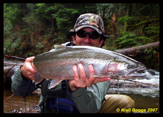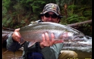 My arrival surprises a tiny water ouzel perched on the log. No fish is visible in the pool, but I don't trust my eyes in the dim light. I strip line from the reel and make a lucky cast, nearly hooking the overhanging log. Relieved, I quickly remind myself to mend, and follow the drift. The indicator pauses and I set into a good fish. The flash of silver in the bottom of the pool becomes, in an instant, airborne. At just under 30 inches, it seems absolutely massive and out of place in this tiny tributary. The fish dives again, turns, and races up the pool, under the cedar log and up into the logjam at the head. I can't follow. The fish is too fast and the pool too deep for me to follow. In an instant it is over.