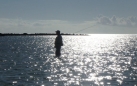 I didn’t manage to land a proper ‘big’ bonefish but I did hook one. From the moment I saw it tip-up and inhale the fly I knew I was in a little bit of trouble. This trouble took the form of two sizeable dead trees that were on the flat, one at about 40 metres from where I hooked the fish and the second about the same distance again past the first. The initial direction of the fish’s run wasn’t a problem, however this was heading straight for a sand bank where it would have to make the decision to go left (safe open space) or right (around the back of the trees from my position). Obviously it chose right. At this point I was already heading towards the sandbank in order to change the angle of pull and prevent the line hitting the tree. Tracy, aware of what was happening, was charging as fast as she could towards the tree – we often employ teamwork like this if we happen to be close together. Unfortunately the bay in which the trees were located had an increasingly soft bottom and we both soon found ourselves struggling in knee-deep mud. As it transpired I managed to avoid the first tree only for the fish to spit the hook somewhere as it powered at full pelt past the second tree. Perhaps I’d pulled the hook out by using too much pressure?
