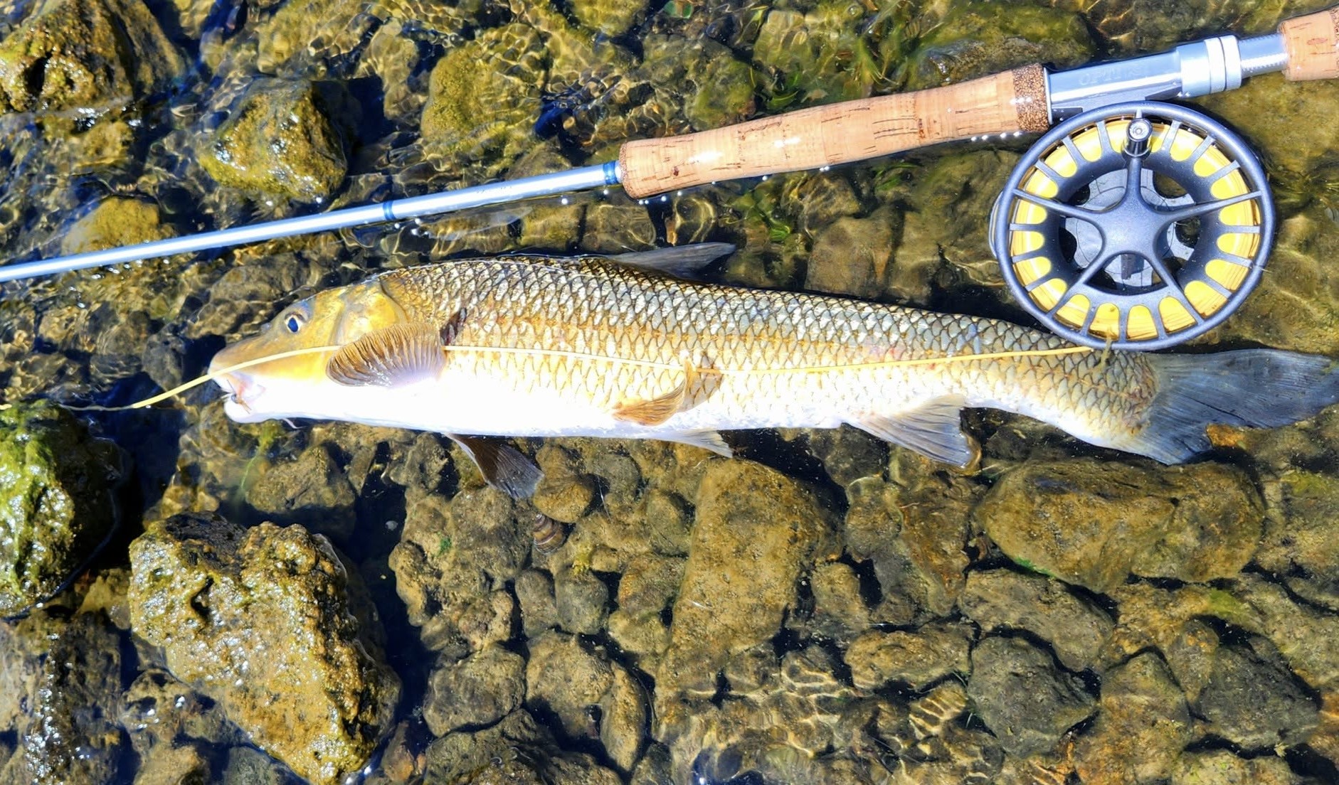 After coming back I decided to go and check out a river I'd left alone for several years because there was a lot of major construction work that basically ruined it. Hawaiian dave and I used to fish it a lot and it was one of the better smallmouth bass fisheries around Tokyo. Clear water, not huge numbers but large bass that could be sight fished with topwater, streamers or crayfish patterns. A good day might have been 3-4 fish with the smallest being 3.5lb and your biggest pushing 5. Not many, but big. The construction work, was canalisation and a couple of bridges being built over several miles of the river and it just ended that smallmouth fishing. I wondered if it would have come back so decided to go and see. I didn't see a single bass, or a single bass angler which is maybe more indicative. But the upper stretch is now mde up of large sections of lovely flats and shallow pools that are full of carp and barbel. It was always a good carp river, but I think we'd become smallie blind and forgotten that. I set up 2 rods, 1 with a Dahlberg headed marabou minnow and another with a size 6 fat albert as we're right in the midst of terrestrial time and I was hoping to get a smallie on top from under the trees. Making my way downstream I saw a couple of barbel and put the dry in front of them, one came to it, but I think the fly was a bit too big for it. Then I saw a shape slightly down stream and put the albert in front of it and it was immediately sucked under. What I initially thought was a bass or small carp, quickly grew into a perfectly conditioned 11lber. Not what I was after, but certainly not bad. I persevered with the streamer in more open areas but other than chases from the barbel there was no action and as there were so many barbel around I switched to a crayfish patten and managed to catch a few of the aggressive barbel despite the fly being bass sized. I know people often refer to carp as golden bones, but the way those skinny water barbel chase down and eat a fly is far more similar to a bonefish. Really excellent fun. I also caught a few more carp on the crayfish pattern over the next couple of miles, but they were only in the 5lbish range. There are a lot of bigger carp there so I'll definitely be back armed with more carp and barbel appropriate gear. I just wish the bass would come back!
