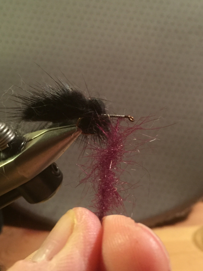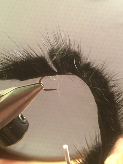 lay the furstrip over the dubbed body and secure behind the hook eye