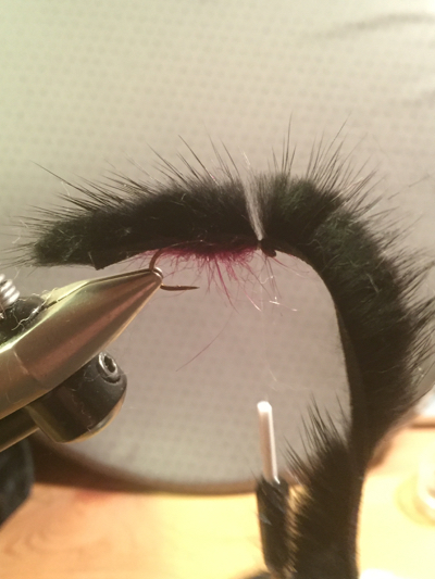 - after laying a short thread base tie in the zonkerstrip opposite the hook point