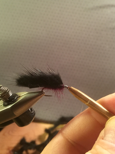 I have some streamers with tungsten heads though. The tying is pretty similar for those, just that the hook is pierced through the fur strip so it ride upside down.
