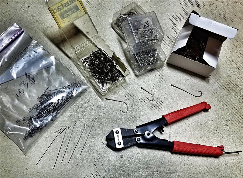But here’s the thing. Buying shanks to tie with is pretty darn expensive, and most fly tiers have a perfect alternative already at their disposal. For years, my number one choice for shanks has been all of the TERRIBLE long and medium shanked hooks that I either collected in my earlier days as a tier or have found in the discount bins of fishing shops or garage sales for next to no $. You know the ones I’m talking about. The hooks manufactured using ineffective heat treating processes resulting in downright weak hooks. The hooks that are so dull right out of the box that you used to spend as much time honing the hooks as you did tying the fly. The ones with a barb bigger than the hook eye. Hooks you wouldn’t trust to a 1 pound trout let alone a 100 pound tarpon. I have a name for all of these hooks. I call them “CUTTERS”, because that is what I do to the hook bend after I tie my stinger fly onto the shank.