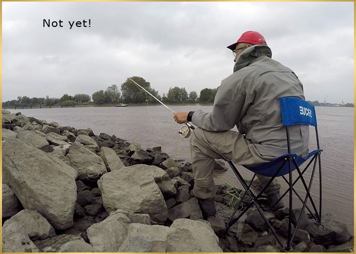 The most difficult part when sight fishing muddy water for me was learning to take time and stay patience instead of casting all the time. These days I like to even have a chair with me when fishing for asp (you may have a look at the pictures below). Sitting in that chair is like staying on a Tarpon skiff. I will be sitting in the READY position and then have just one quicky cast when I see a fish moving or when I feel (know) it's about time.