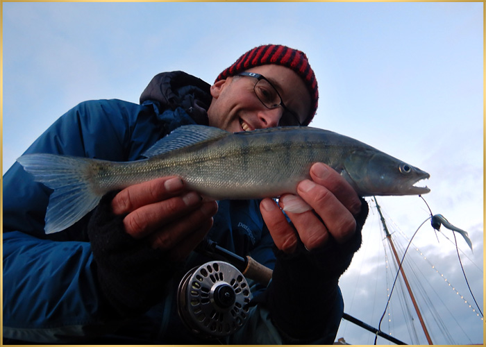 During the past 25 years I caught a lot of Zander on fly rod. But I never fished much for them in the winter when they usually stay in the deep holes. Last week I tried a lot of different fly line set ups to get my fly perfectly in front of their nose in a small harbour in my home town. The harbour offers me 4 to 5 meter (13 to 16 feet) of water depth.