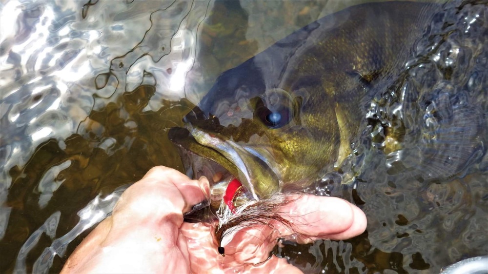 I moved several bass over the first mile but they wouldn't commit, but instead of stopping I decided to switch flies and keep going eventually connecting with a nice fish on a 7 inch bucktail deceiver  from behind a large boulder at an inlet .This was followed with another couple of carp and several more smallmouth charging the fly. The refusals were frustrating but I was really focused on exploring the river. Next time I'll be moving more slowly and working likely looking spots more thoroughly with, probably, smaller flies.  In the end I had covered about 8 miles of river, found some nice spots that previously didn't exist and caught a  couple of smallies and few surprise carp which were oddly disappointing. Don't get me wrong, I love fishing for carp and it's a weird feeling to be disappointed when you realise you're connected to a 3ft carp and not an 18 inch bass, but there you go.