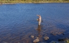 It was our last fishing day in Varzina camp and our team had lower part of river for us. My guests walked before me to S-bend, it is pool which you don’t know what gonna happen. There might be salmon or trout but there is always fish. I checked some spots and learned river more and let my guests go to have first casts. When I arrived to pool about 1 hour after guests, I heard that they had some action. Nick had strike and right away he was running out line and backing so, he was forced to stop fish and tippet cutted. Also they told me that there is lot of rises, or more like jumps and quite soon I saw one by myself.