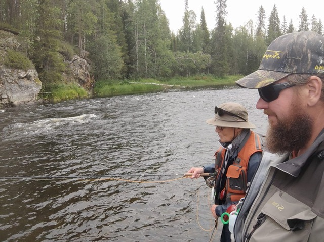 A week ago on Thursday I was guiding. It was a combined trip to an Italian-Finnish couple and to Super lady from Finland. I got a call from her on the previous Friday during hay making. She asked if I could take her fishing next week. She said that fishing has been difficult and hasn't got sizeable fish, also she said that she hasn't fished ever Kuusinki. She always has fished the upper part of Kitka which is easy to access.