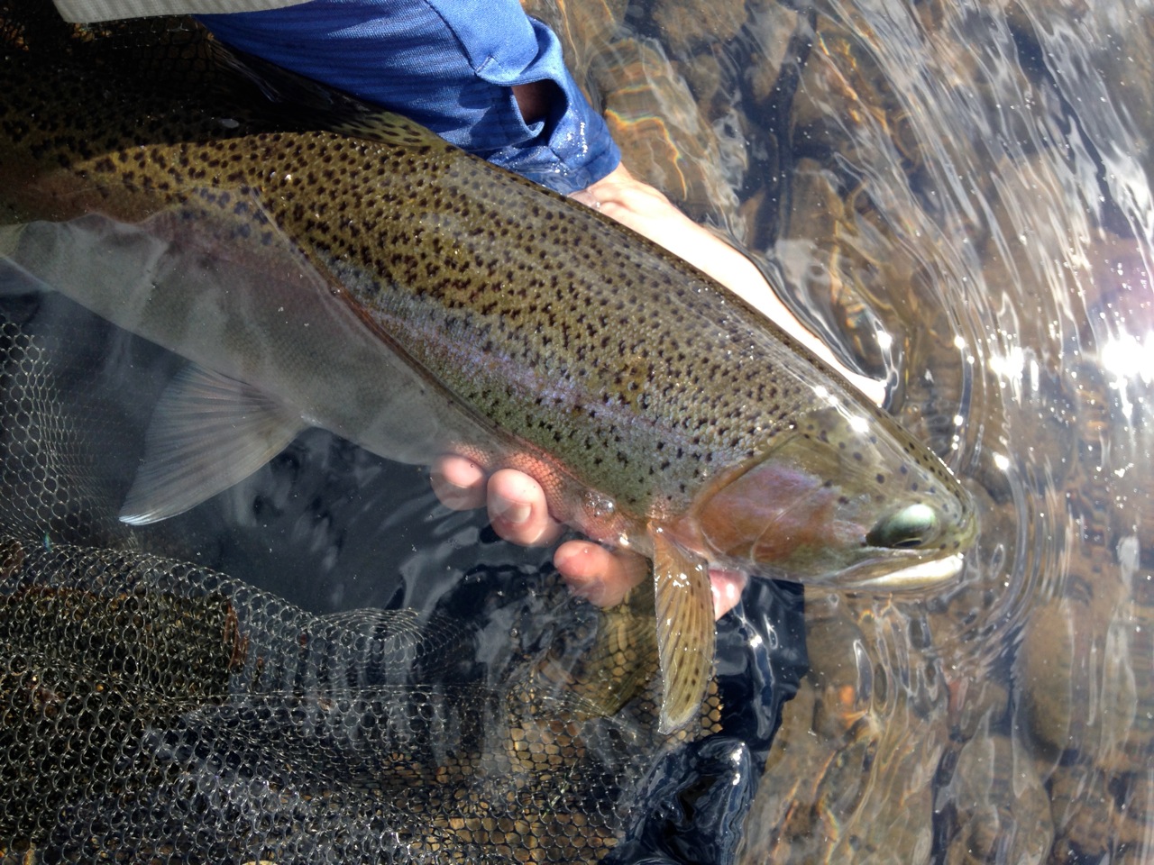 Spring trout fishing here is well under way with the may fly hatches thick and overlapping at times - each hatch peaks and then concludes with a spinner fall, which is my favorite type of fishing. March Browns are close to being history for this year so this past week was perfect for a couple of fine afternoons fishing in and around the last of their spinners. We have an enviable population of gorgeous, stream bred Rainbow trout seeded by just one stocking - a more or less accidental stocking a long, long time ago of California strain Rainbow trout - once thought to b efrom the McCloud river, recently it has been decided they are San Pedro fish. No matter where their bloodline started, they can get impressively aggressive when feeding on big spinners - not your typical dainty, quiet sipping rises. Spinners floating prone, riding out their last moments in the surface film flip their wings one last time and a trout pounces on it - chomps it !