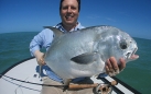 I caught my biggest permit on the flats with Bruce on a fly about the size of your pinky nail! I’ve caught others on a small fly too. I think we earlier used flies that were too big and landed too hard. As I’ve heard guides say, real crabs don’t drop from the sky. This big fish was aggressive and moved-in for the kill. I set the hook and cleared the line without incident. This fish made wonderfully long runs and pulled hard. Not long after I released this one we estimated at 28 lbs. or 12.5kgs, I caught another smaller permit on the same fly. It reminded me of muskie fishing when all fish seemingly do the same thing at the same time. You could have follows all day without a bite, then catch three in a row. With these more challenging fish, catching them is often feast or famine.