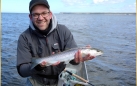 Yesterday we were back into little warmer weather (sunny and 6 - 8 degrees Celsius) and managed to land 8 Sea trout and lost some more. Nearly everyone of us had fish. Great day for sure.