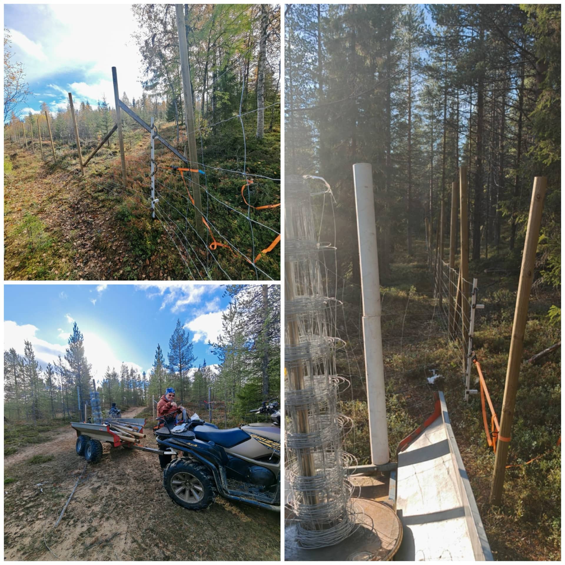I have been building extension to our reindeer paddock few weeks now. Extension will be about 700 meter, using 3 meter poles and two 120 cm net, to make fence 2 meter high. Poles has been placed for two weeks now and it is time to pull nets straight and tight.