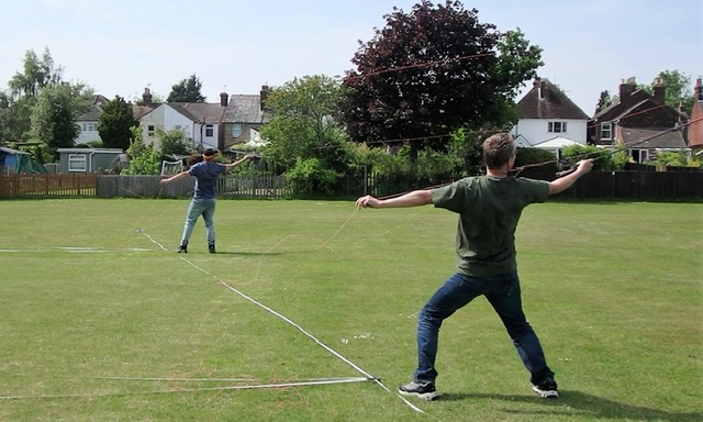 The wind also caused some issues with the distance events as it switched through probably a 40 degree angle at regular intervals. As there were both left and right handed casters present it was evident that someone was going to be disadvantaged if the tape was put at either extreme of the winds deviation. As such, a decision was made to put two tapes at each casting position arranged in a ‘Vee’ layout. The caster then selected which tape they would cast down immediately before the clock started – they then had to stick with this decision, so no changing half way through.