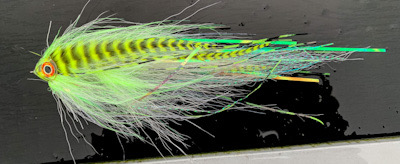 Tail: Bucktail, flash and longer, white synthetic fibres.