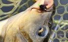 Mulberry time is basically the equivalent of duffers' fortnight for carp. Once the fish really get on them they get reckless and it's great fun catching them on top. So much fun in fact, that over the years I've taken cuttings from bushes and propagated them along my local river. Thy didn't all take but enough did and there are now some nicely established trees and bushes along the few miles I fish. At the moment there are still plenty of white/green berries on the bushes with maybe only a quarter fully ripe. Enough have fallen in that the fish are starting to gather under the branches, but we're not yet at the peak. Even though it's still early, the fish were definitely on and as I'm basically the only person who fishes this stretch of river they've had several weeks of respite so were much less difficult than normal. It took me about 13 seconds to catch my first fish and had a good dozen in the first hour. The key is to walk the fish away from the tree once you hook it. I usually try to go a good 10m or more upstream, play and land it before going back to the bush and witing for the fish to settle. This means you can usually catch several fish from each bush before they switch off completely. Later I managed seven from one bush, and actually had an 8th eat the fly but I miss timed the hook set and spooked the fish which spooked the rest of them. They become weirdly tolerant of a lot of things, and don't mind multiple presentations and even a bad shot, but a missed eat seems to be where they draw the line.