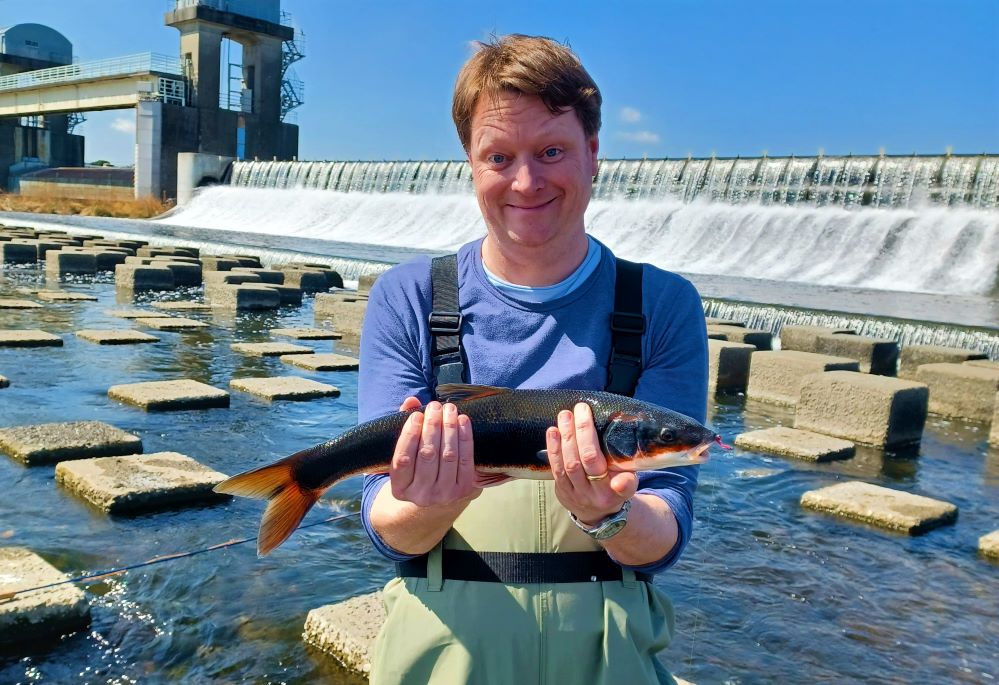 We started with John fishing a jig and me on the crayfish flies. Unfortunately John, being a beginner seemed to be great at getting snagged up and losing gear so we moved towards some faster water to look for maruta. It didn't take long to find them in numbers. They often show themselves in the body of the pool, but are far more catchable in the head, tail and riffles. I know that people spin for them with lures, but I don't really know what they use so I went old fashioned and set John up with a fly and bubble float and showed him how to trot it down stream. It didn't take him long to get bites, but given he'd only been fishing for seabass with 20lb leader, he was struggling with the lighter line and stronger fish. After a few re-ties and drag adjustment he landed his first, then another and I thought I would have a few casts myself and quickly got into a few fish myself. After lunch I left John to have a mooch around for smallmouth, but only managed to lose a little one. By the time I got back John had landed a good half dozen maruta, lost at least that many flies and was looking pretty pleased with himself. He could probably even go out and replicate the situation on his own now. It's really great to watch him start getting to grips with things, begin to understand how the currents interact and why it matters. Although he still has a long way to go.