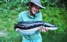 This morning had to be the morning I was desperate for a fish, I jumped straight on the boat with Paul and off fishing. We decided to fish one of the island on the lake and went into deep bay. As soon as we went into the bay Paul saw some babies, they were moving quickly and very frequently. They were big babies and had lost their orange colour. Paul turned off the outboard and moved us up with the electric, we saw them moving up the bank and got into the next likely spot they would rise. Both parents rose and I put the shot in it wasn’t right and landed in the babies. Paul said not to pop it and we might have another shot. The fish kept moving around the shore and went into a fallen tree at the back of the bay, they stayed there for a while then finally moved out. There was a sandy bit of bottom where the fish were headed, Paul said to put my popper out and wait till you see the fish and pop it. The plan worked perfectly the fish swam over the patch of sand and we could see the all of them, I gave it one pop and one of the parents was onto it. Engulfing the popper, the loudest boof over ever heard from a fish!! The fight was on, I was giving this fish nothing, I couldn’t let Declan be in front for another day. It was the most intense fight I’ve ever had, I can't believe how strong it was! Got the fish to the boat and Paul netted it! We were both that excited, couldn’t believe it happened. We took a few photos and released it back to its babies, we couldn’t crack a beer soon enough. I was on cloud nine for the rest of the day!!
