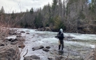This last weekend we tried fishing The Wild Mile, which starts about a mile above the town of Big Fork at a small, ten-foot-high electric-generating dam. The Wild Mile is listed as Class V, but much of it is beautiful pocket water when the flows are low, which they currently are. We fished up to the dam, during which time I saw one Golden Stone, but not a single fish, not even a fingerling or baitfish. Once again, we figured the fish hadn’t started migrating out of Flathead Lake. We have much to learn about the cycles of the fisheries in the area, the Lake influencing so much of it. Since the smaller lakes finally are starting to ice off, we’ll have a go at Largemouth and Pike, neither of which we’ve ever caught.