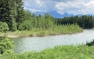 We continued to drive northward on the Outside North Fork Road, which became “greasy” from mud, to the permanently-closed border entry. By this time, our car looked like we’d been four-wheel driving in the mud. At the border there is a raft launch on the U.S. side. Living life on the edge, I fished three feet across into Canadian water without a license. Shhhh. I didn’t know precisely where the “line in the sand” was drawn. Trying to wade downstream didn’t get us very far because the water was too deep and swift. Staying below the high-water mark was impossible as we quickly cliffed-out. (For those who may not know, stream access laws in Montana allow you to get into the water at any bridge or other public access point, but from there you need to stay below the high-water mark if on private property.) We didn’t fish long with such a limited area, but got some tips from a local angler who grew up in the area. We decided to drive south to another boat launch.