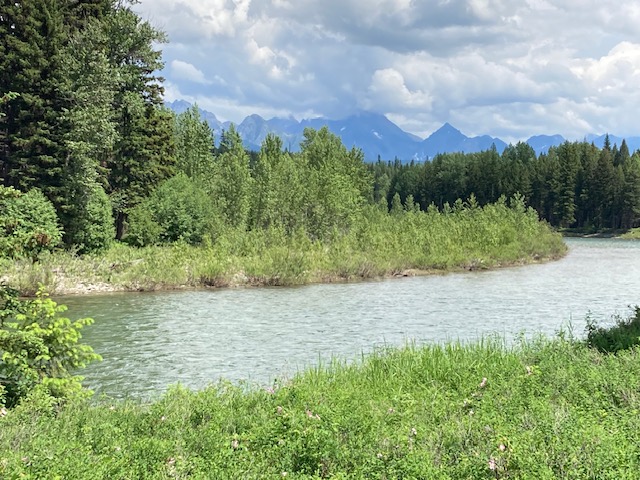 Saturday was my choice of where to go and what to do. I chose to explore the northern section of the North Fork of the Flathead River that has wild and scenic designation. We drove several miles on dirt road to the old, small, timber town called Polebridge, now a tourist trap. We had to stop at the Polebridge Mercantile to get the most scrumptious huckleberry bear claws on the planet. It was my birthday, so the pastry served as my piece of cake. Our initial thought was to drive across the bridge there, which used to be a bridge made of timber poles, and then north on the Inside North Ford Road, just inside Glacier National Park. However, the Park has become so popular that a reservation is now required to drive into the park, even at remote points.