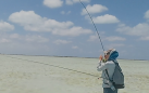 There were also many occasions when I was on my own when I would have liked to have filmed the catch. I remember one in particular where the fish had been tailing in shallow water and it leapt on my fly, first cast and then ran, however the ground was covered in 'sand-hills' so every so often the line caught resulting in the fish running in a perpendicular angle to most of my line and then I had to wind extremely quickly when the line dislodged to take up this slack. During this run, the fish spooked another bone that came swimming straight towards me and typically this one was significantly bigger than the one I was playing. It only spooked again when it was about 15 yards in front of me so I had a good view of it. James had a few similar situations but with small sharks that were spooked by the bone being played, however I remember one of these occasions where I had to run at the shark to scare it away to ensure it didn't try to 'eat' the bone.