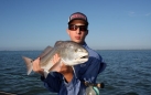 The good news is that although the Redfish population did take quite a hit in terms of a fish kill, there is still a VERY healthy, VERY hungry population of Redfish haunting the far reaches of the Laguna Madre. So much so in fact that Jackson took two fine specimens today pushing twelve pounds, and lost two more that were much bigger. We had the privilege of witnessing several large schools of 50 or more fish literally churning the flats for whatever they could get in their mouths. Additionally, the weather was PERFECT, sunny and the wind never blew harder than about 6-8 knots.