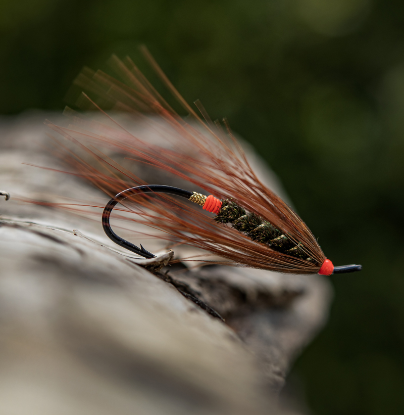 PoD: A finnish salmon fly, Viherpuna. This is a bit of an allrounder, It does well fished high, low, fast slow and only "faults" as it makes little sense in big sizes.