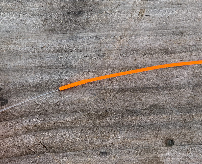 For my practice line, however, I like to glue the leader into the core. I first read about this in an article maybe 25 years ago, written by Dave Whitlock. I think he also came up with the idea. He wrote he’d caught tarpon using a glued-in connection. I’d never use this connection for fishing. Superglue is used and it hardens brittle and will crack over time. And it was in fact a glued-in leader that fell off in a blind cast a few weeks ago.