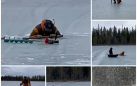 I yelled to Siili that she would throw rope which will be easier to get out. I got rope and I asked Siili to go closer to shore as I didn't want she dropping in ice also. Siili and trainee held rope and I pulled myself up easily. I crawled few meters to be sure that I'm on solid and then walked on shore. My toes were little cold — not bad, and aubergine has turned smaller than shrimp. I called to Satu to warm up sauna as I dropped on ice and then called the team leader that ice fishing is cancelled for sure.