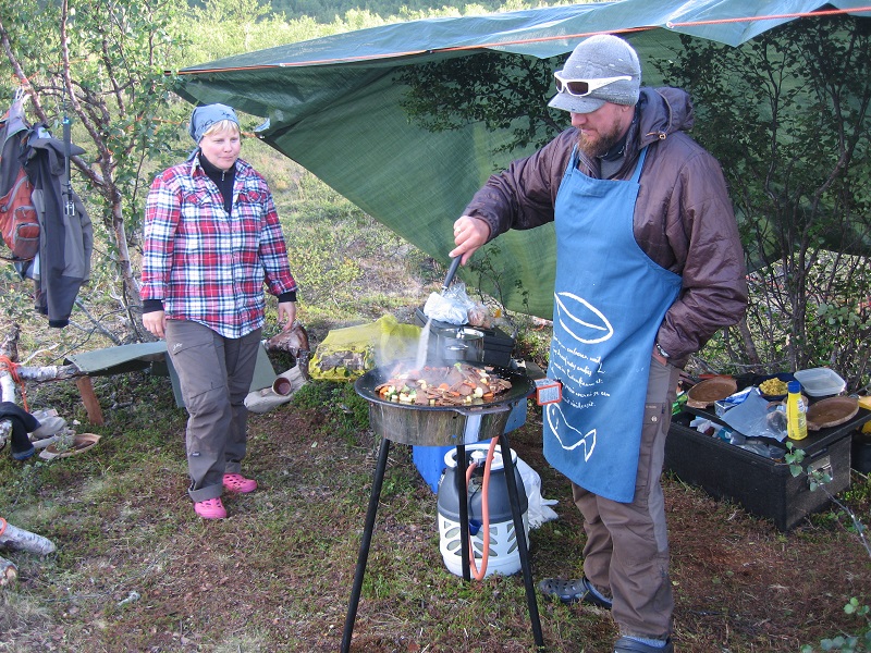 When fishing whole week with me or having trip to fjells. Well then it is different menu. Good breakfast, light lunch and good dinner. Dinners are normally quite simple stuff like, fried vendace, reindeer burger and fries or fish burger (pike) and fries, or poronkäristys (sauteed reindeer) with potatoes or reindeer striploin. And if it is mushroom season then some of those also. Nothing fancy but doing the work to fill you up. I hope. And if we are lucky Satu is with us and doing some dessert and cup of tea from herbs.